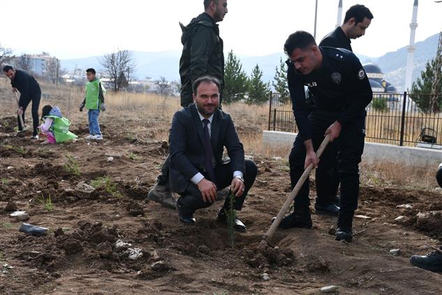 Müftü KORKMAZ etkinlikte Kurum amirleri ve öğrencilerle birlikte fidan dikerek çalışmalara katkı sundu.