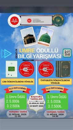 Yarışma kapsamında Türkiye genelinde dereceye giren öğrenciler Umre ödülü kazanacaktır. Lise öğrencileri kategorisinde Türkiye genelinde ilk 150 kişi, üniversite öğrencileri kategorisinde ise ilk 100 kişi Umre ile ödüllendirilecektir. Ayrıca Doğankent İlçe Müftülüğümüz tarafından ilçe bazında dereceye giren öğrencilere;