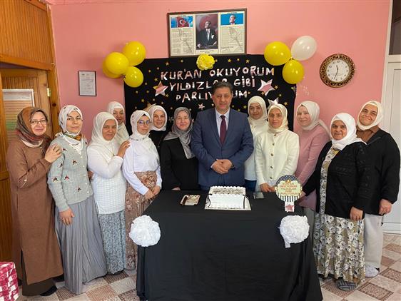 Ziyarette kurs hakkında kurs öğreticisi Hacer Kalaycı'dan bilgi alan Müftümüz Haki Özgül, "Kur'an okumanın önemi ,Aile Sevgisi ve Güzel Ahlak" hakkında sohbet ederek,bayanların okuduğu hatmi şerifin duasını yaptı.